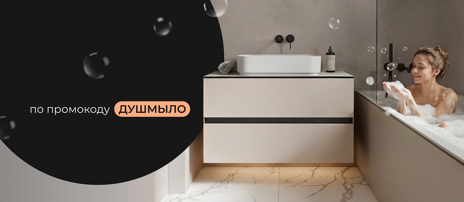 С 08.04.2026 по 31.05.2026 в интернет-магазине ZOV Online действует акция на мебель для ванной комнаты из новых коллекций — скидка 7% по промокоду ДУШМЫЛО.