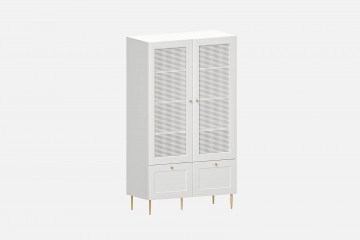 МАТЕРИАЛ ЛДСП 18 мм, цвет Белый Премиум; МДФ/ПВХ, цвет Античный Белый ВСТАВКА Ротанговое полотно искусственное окрашенное, цвет RAL 1001