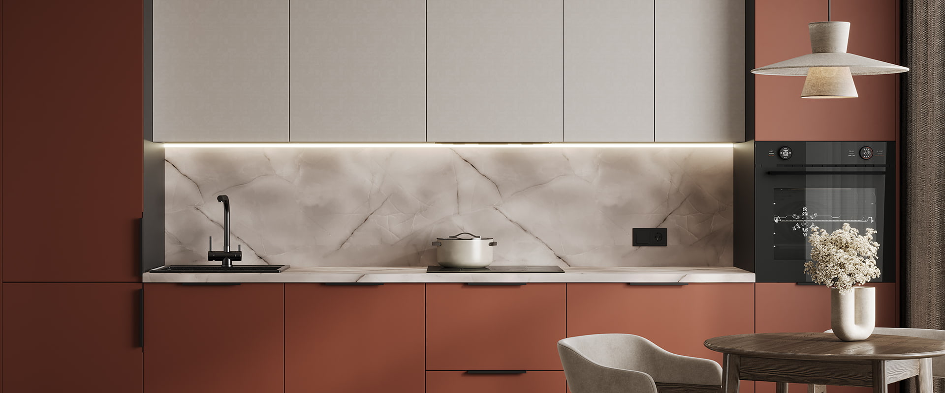 Бытовая техника, мойка, смеситель, декор в стоимость не входят. Вырезы под мойку / варочную панель производятся при необходимости самостоятельно. Вы можете подобрать другой доступный в стандартном ассортименте цвет фасадов / столешницы, связавшись с менеджером.