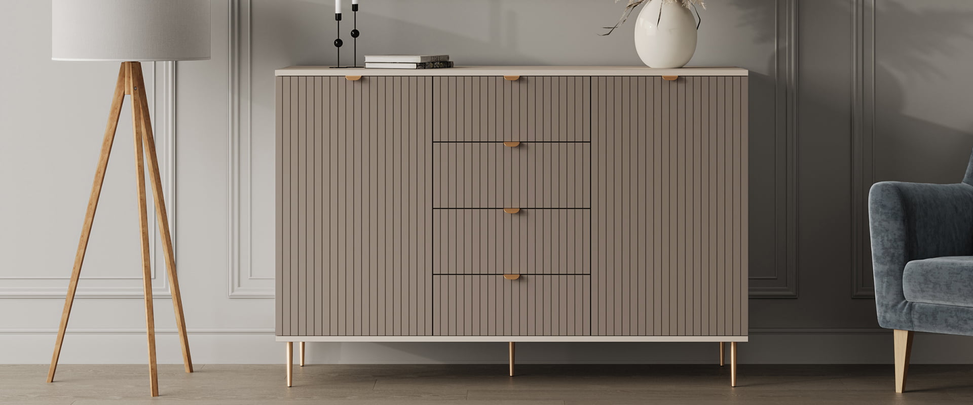 МАТЕРИАЛ Крашеная МДФ, цвет RAL 7030 Матовый / ЛДСП 18 мм, цвет Ярко-серый