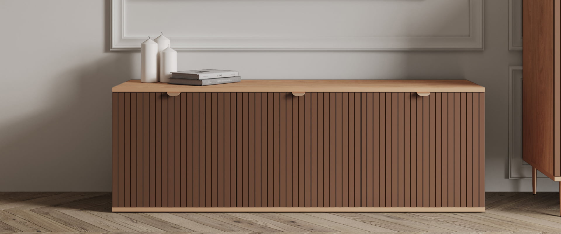 Тумба под ТВ Аврора‑42 (цвет RAL 8025 / Дуб Медовый)