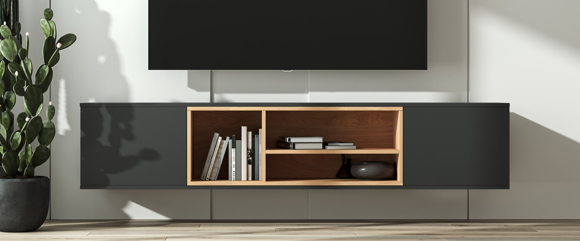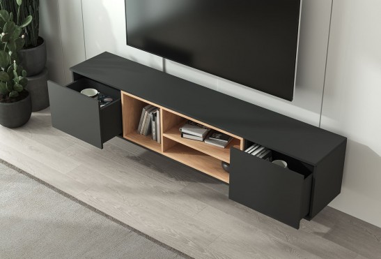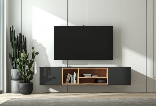Тумба под ТВ подвесная Камелия‑5 (цвет Антрацит / Дуб Медовый, ширина 2000 мм)