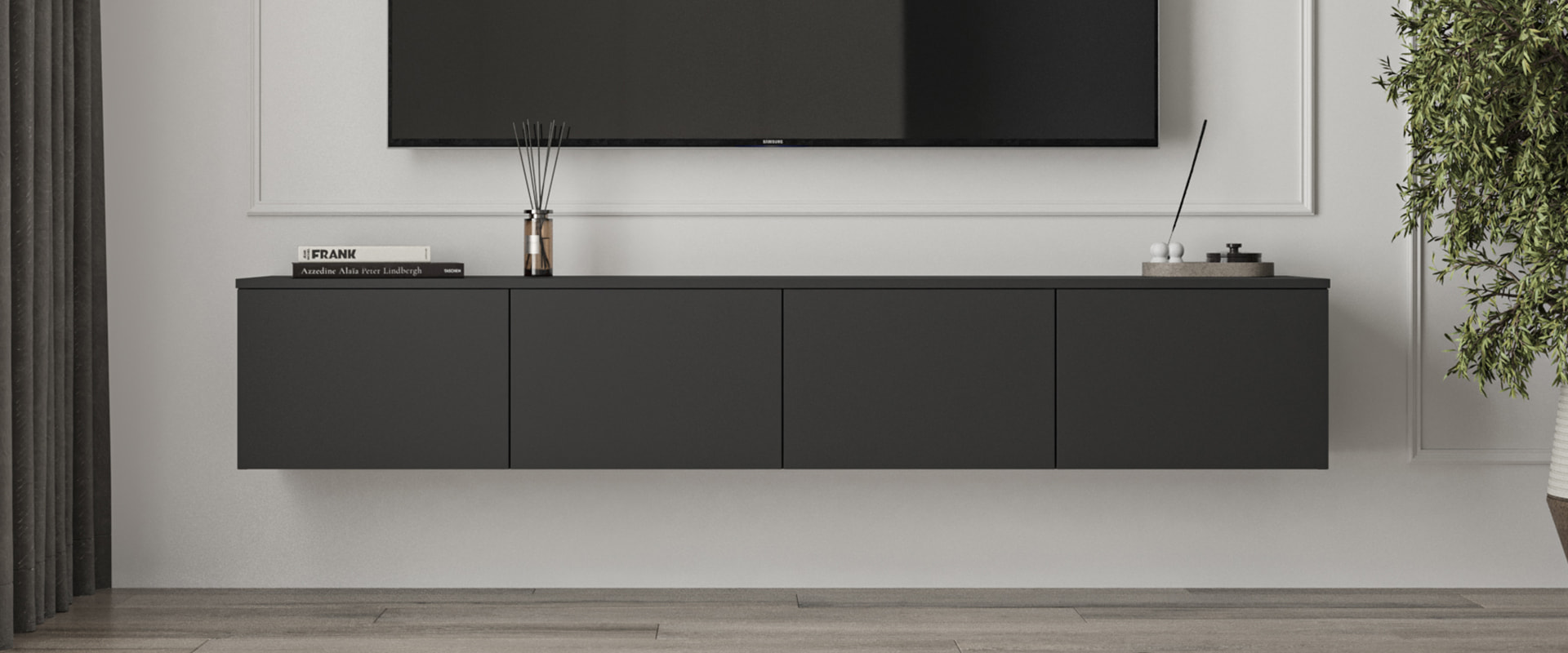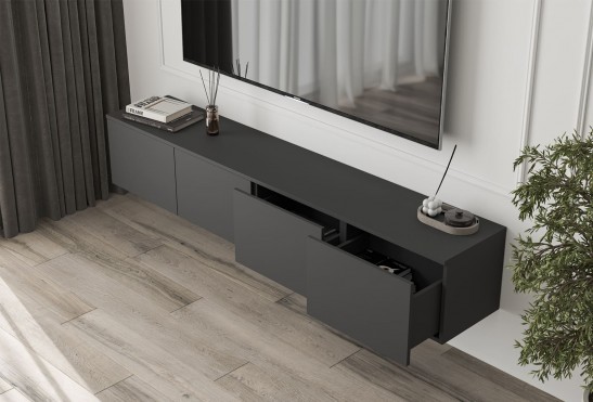 Тумба под ТВ подвесная Лора‑11 (цвет Антрацит, ширина 2000 мм)