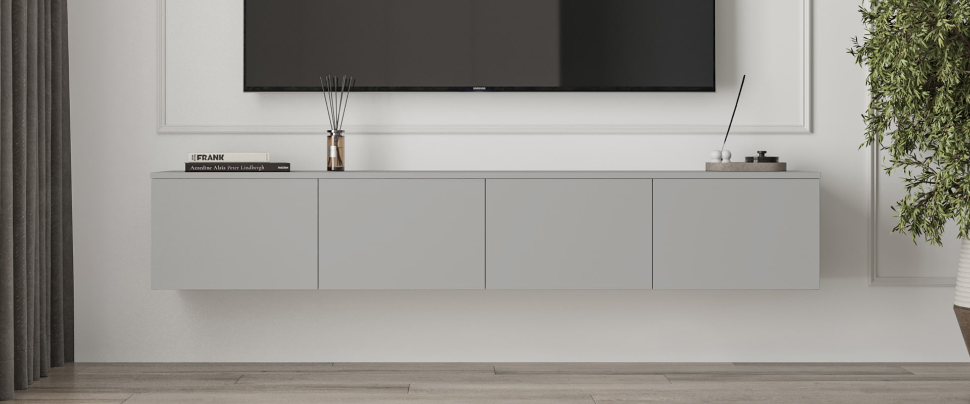 Тумба под ТВ подвесная Лора‑9 (цвет Серый Камень, ширина 2000 мм)