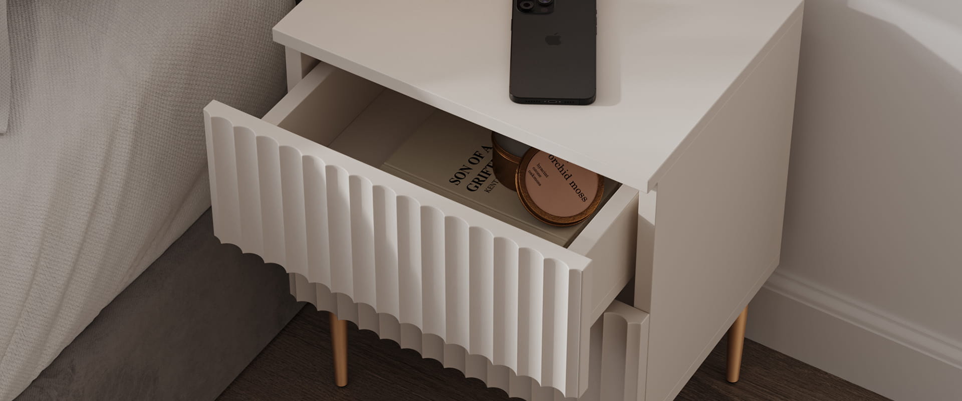 Тумба прикроватная Паола‑2 (цвет Ярко‑серый / Тауп Серый Ф Premier Matt)