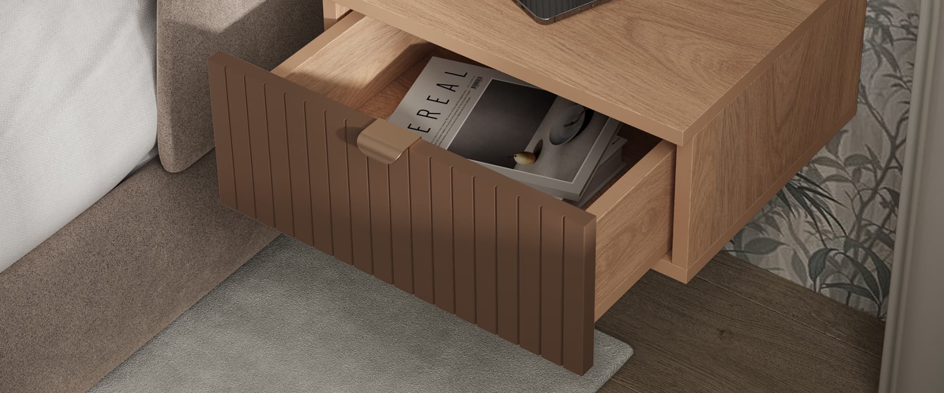 Тумба прикроватная подвесная Аврора‑78 (цвет RAL 8025 / Дуб Медовый)