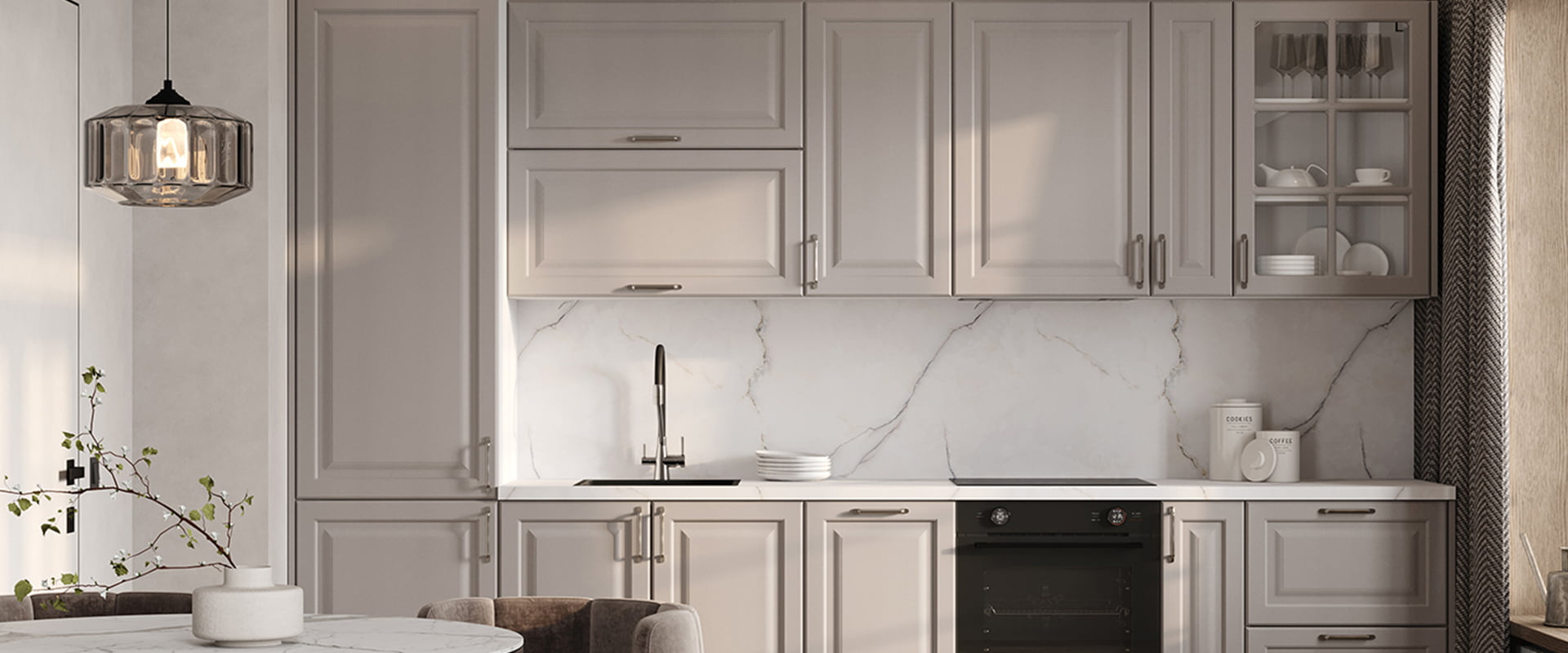 Бытовая техника, мойка, смеситель, декор в стоимость не входят. Вырезы под мойку / варочную панель производятся при необходимости самостоятельно. Вы можете подобрать другой доступный в стандартном ассортименте цвет фасадов / столешницы, связавшись с менеджером.