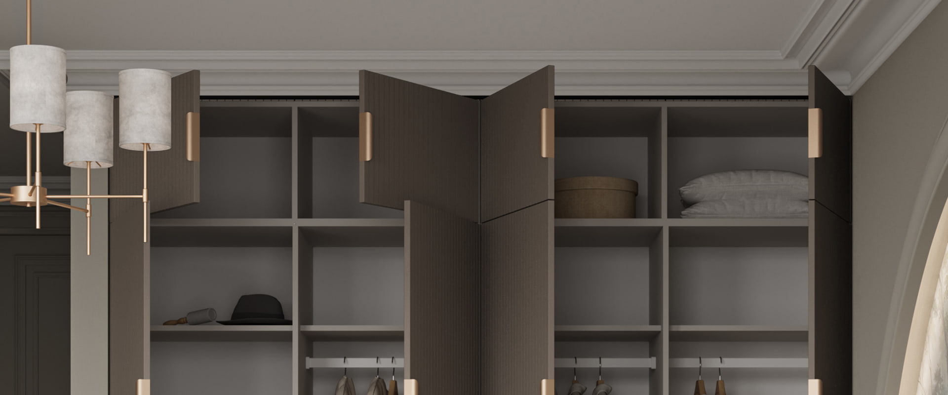 МАТЕРИАЛ Крашеная МДФ, цвет RAL 7030 Матовый / ЛДСП 18 мм, цвет Ярко-серый