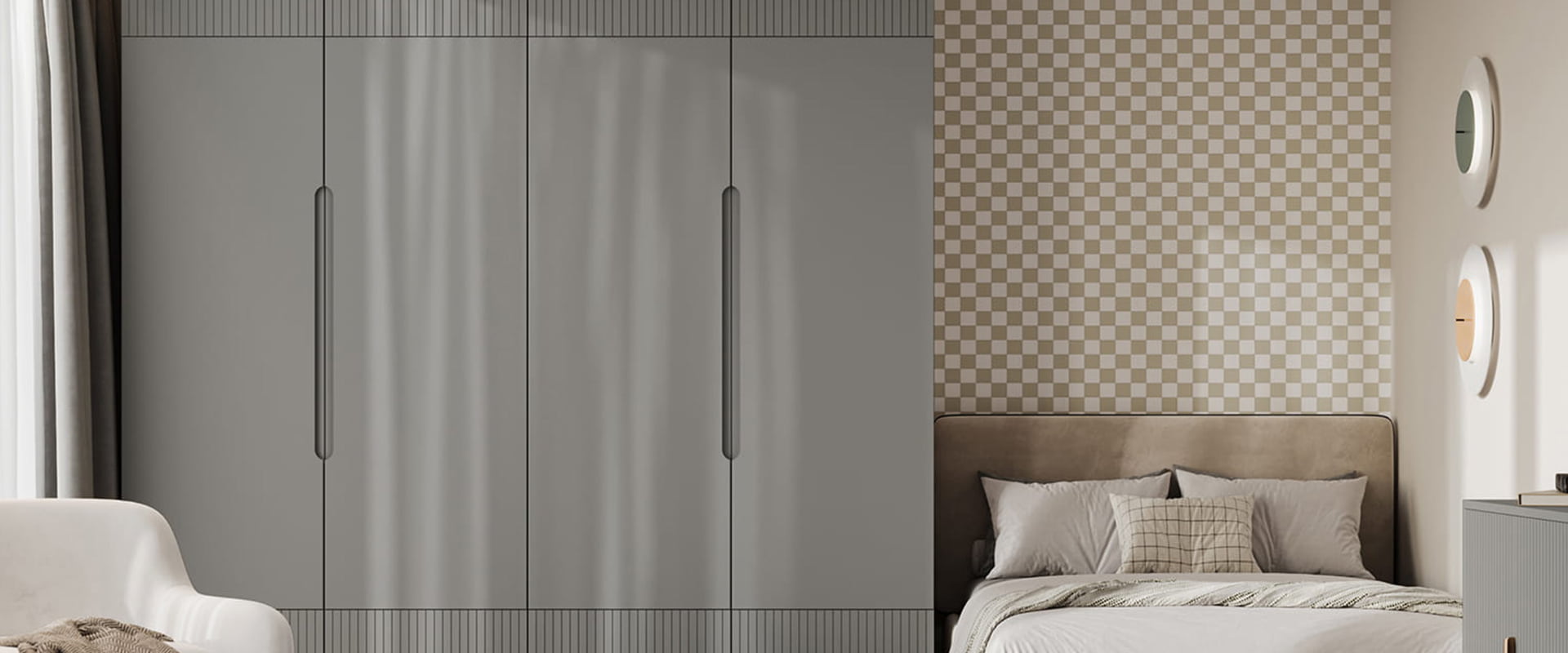 МАТЕРИАЛ Крашеная МДФ, цвет RAL 7042 Матовый / ЛДСП 18 мм, цвет Серый Камень