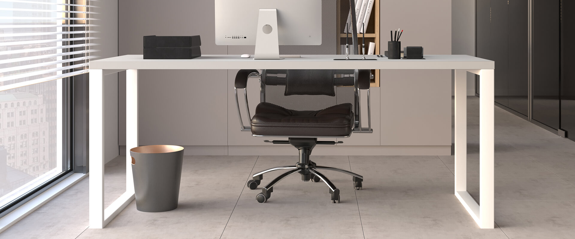 МАТЕРИАЛ СТОЛЕШНИЦЫ ЛДСП 36 мм, цвет Серый Камень МАТЕРИАЛ ПОДСТОЛЬЯ Металл муар (60 × 30 мм), цвет Белый