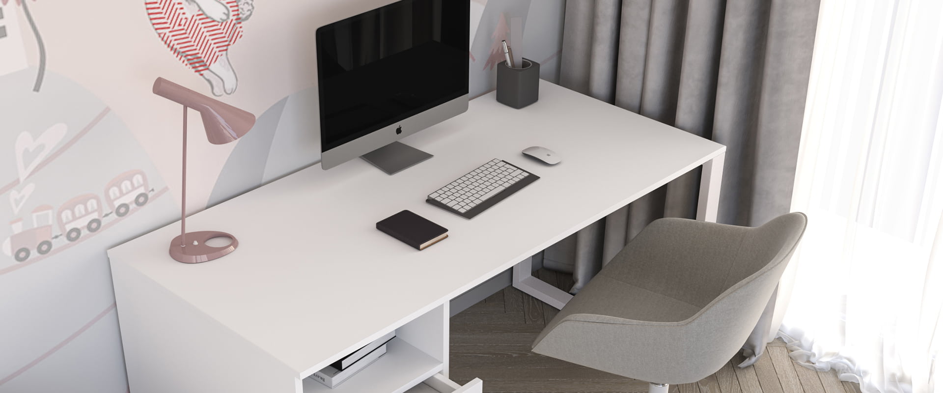 МАТЕРИАЛ ЛДСП 18 мм, цвет Белый Премиум ПОДСТОЛЬЕ Металл муар (профиль 60 × 30 мм), цвет Белый